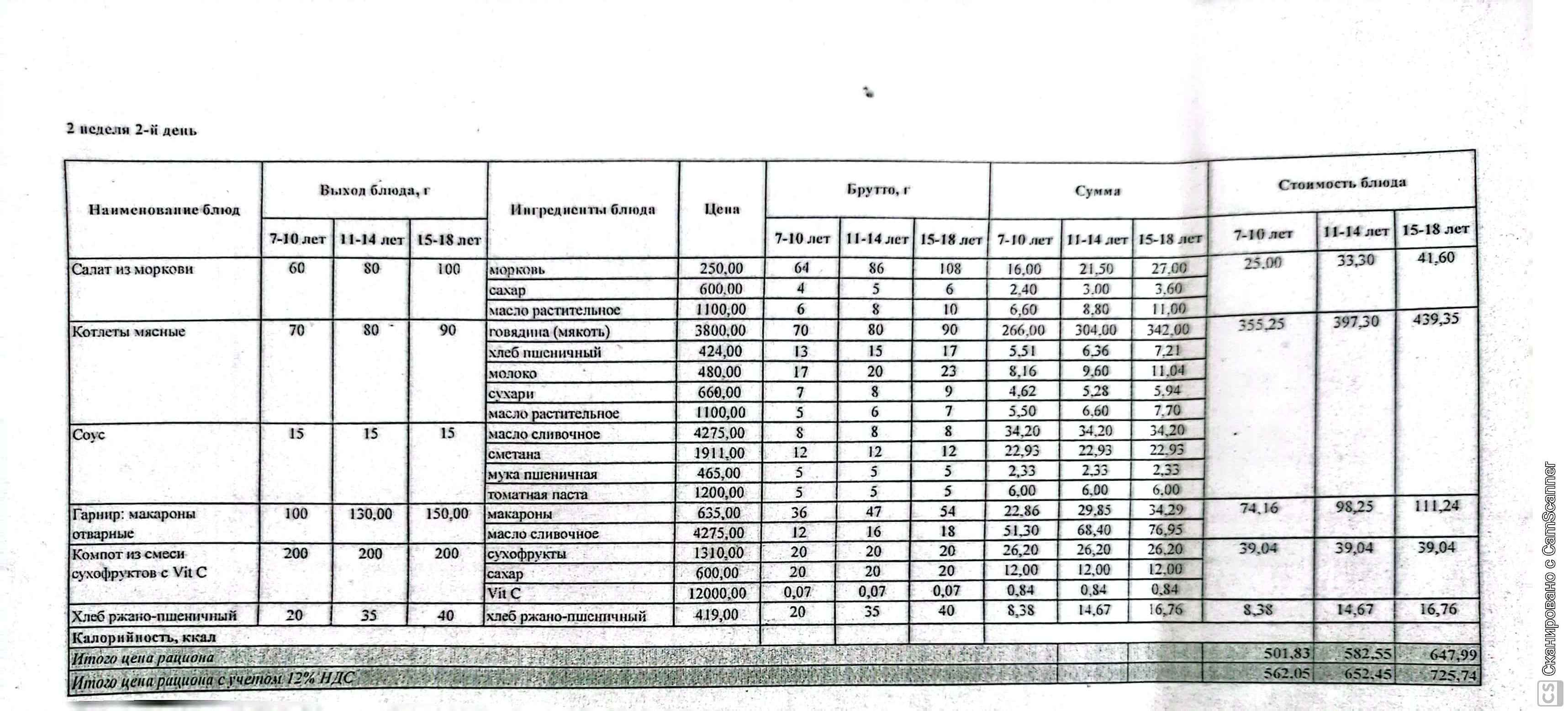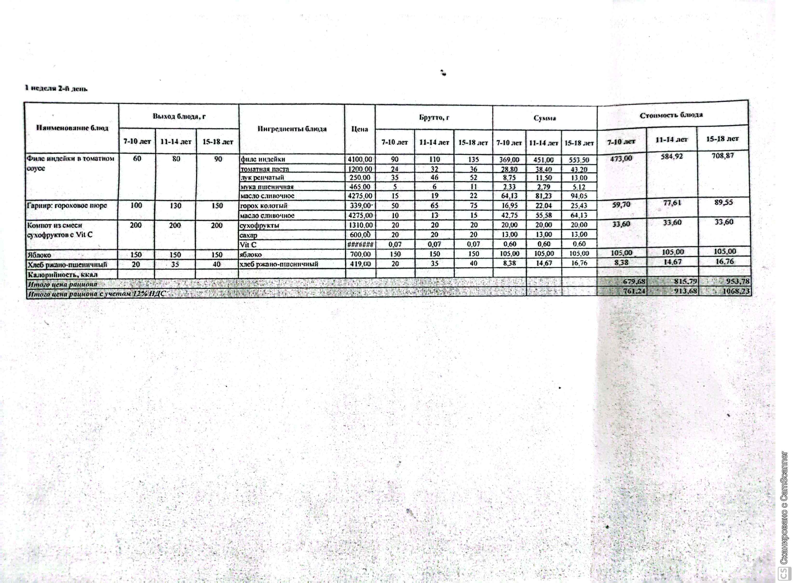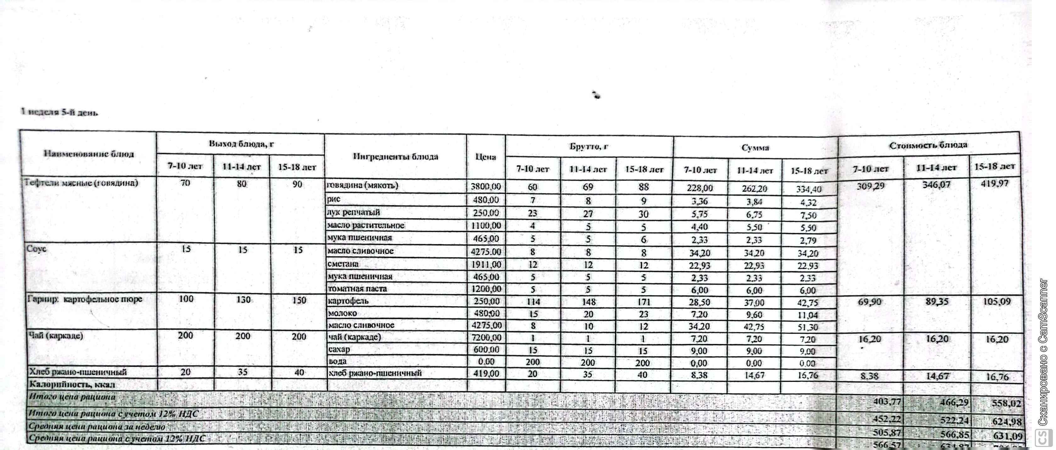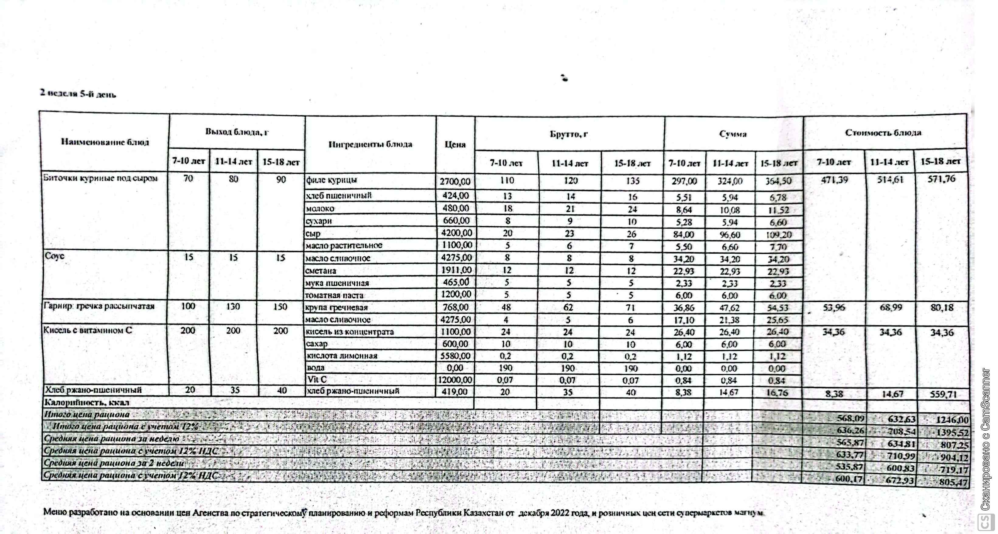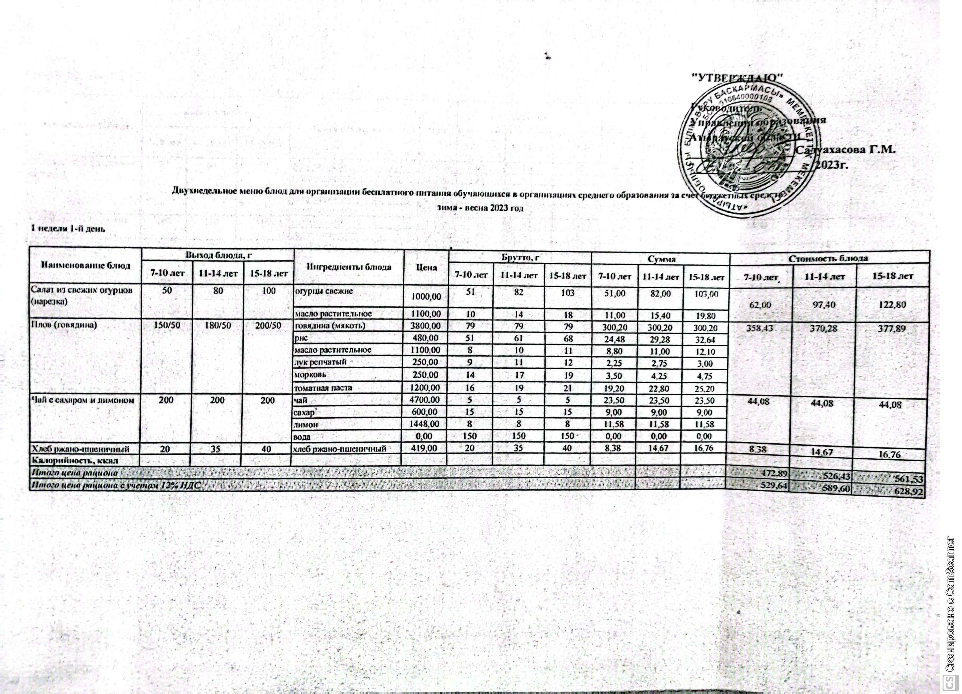 | 1 | Ас мәзір |