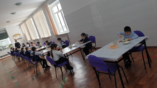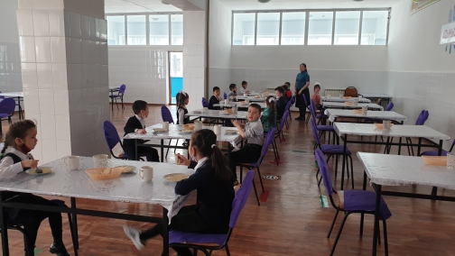 Мектебімізде 22 ақпаннан бастап ыстық тамақ беріліп бастады.Барлығы 378 оқушы ыстық тамақпен қамтылып отыр.Оның аз қамтылғаны 11 оқушы,1-4 сыныптарда 367 оқушы. Асхана іші санитарлық талаптарға сай.Оқушылар уақытылы тамақтануда.