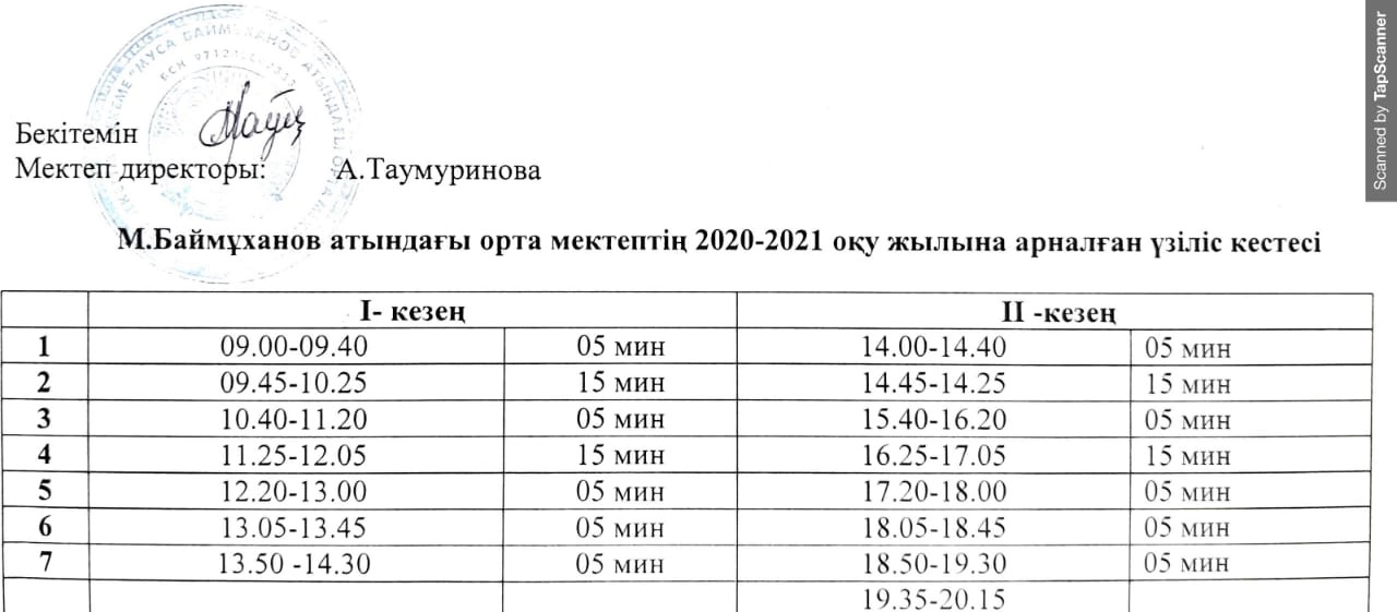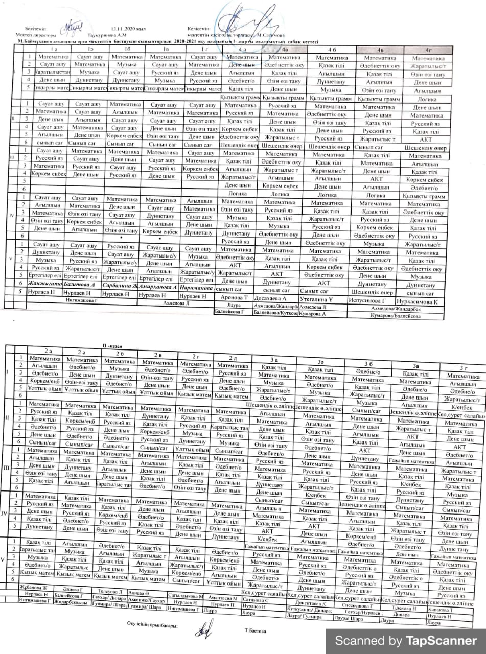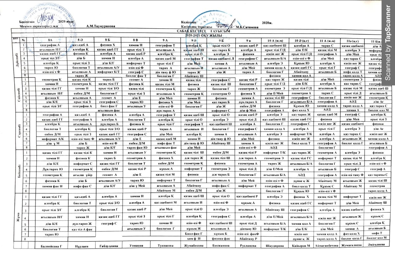Оқу жылындағы ұйымдастырылған оқу қызметінің кестесі