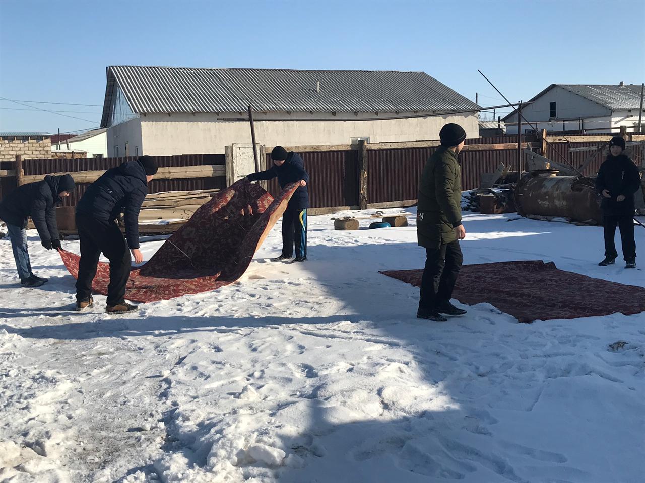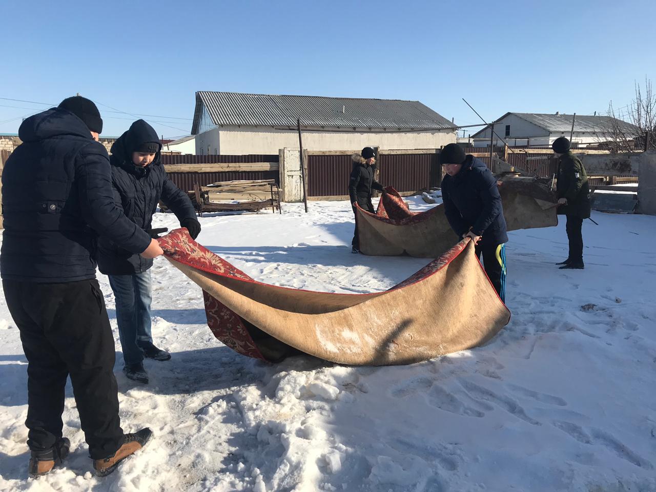 Қамқорлық айлығына байланысты Мұса Баймұханов атындағы орта мектебінің 8а,ә сынып оқушылары қамқорлықты қажет ететін жалғыз басты жандарға көмек көрсетіп (аула тазалау, үй жинау), азық-түлікпен қамтамасыз етті. Сынып жетекшілері Л.Шаудирова, А.Сагындыкова.