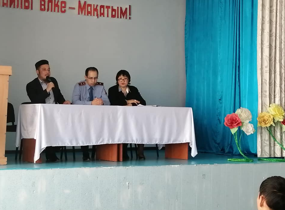 Дәріске жергілікті атқарушы Макат АПБ КПБ аға жедел уәкілі полиция майоры Ахан Аскербекұлы, "Макат аудандық мұсылмандар мешітінің бас имамы Даурен Нұржанұлы қатысты. Бұл шараның мақсаты 1.Жастардың өмірге деген көзқарасын, рухани дүниетанымын, мінез-құлқын қалыптастыру. 2.Терроризм, діни экстремизм туралы жалпы мол мағұлмат беру мен қоғамға жат ұйымдар мен күштерден сақтау. 3. Халқымыздың ғасырлар бойы жасап кеткен мұрасы имандылық әдет ғұрып, салт-дәстүрді бойларына сіңіре отырып елжандылыққа, ізгілік пен мейірімділікке баулу.