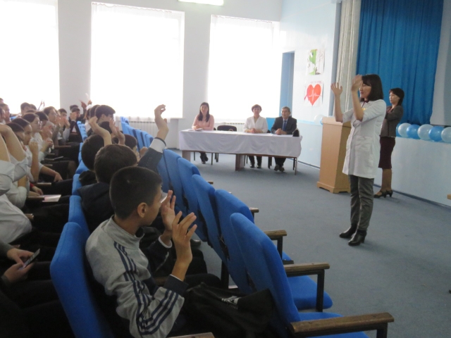 Оған аудандық ауруханадан дәрігер нарколог: Дәулетов Төлеу Умирханұлы, фельдшер-нарколог: Наукенбаева Лира Байменовна, психолог: Баймағамбетова Жарқын Құлданбайқызы қатысты. Оқушыларға есірткі, ішімдіктің алдын-алу туралы құнды мағлұматтар берді. Психолог-маман тренинг өткізіп, оқушылар мамандарға сұрақ қойды. Әр сұраққа тұжырымды жауап берді.