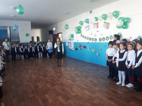 М.Баймұханов атындағы орта мектептің 2020 жылдың 17-27 ақпан күндері бастауыш сыныптардың «Математика, жаратылыстану, дүниетану әлеміне саяхат» атты апталықтың ашылу өткізілді.