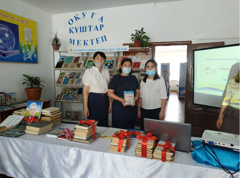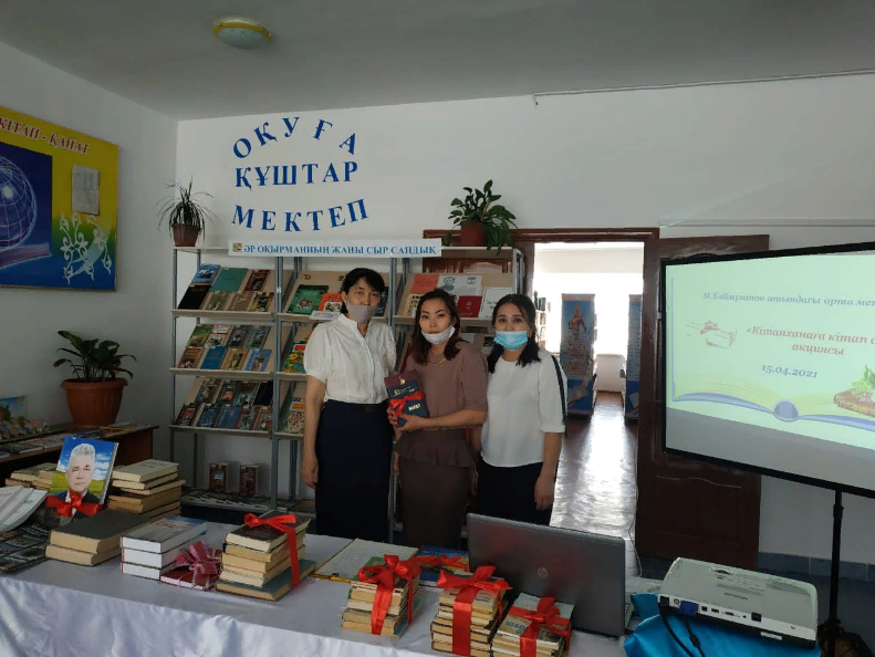 Атырау облысы, Мақат ауданы М. Баймұханов атындағы орта мектебінде 2021 жылдың 15 сәуір күні Тәуелсіздіктің 30 жылдығына орай және "Оқуға құштар мектеп" жобасы аясында кітапханашылардың ұйымдастыруымен "Кітапханаға кітап сыйла" акциясы өткізілді. Мақсаты: Кітапхана қорын көркем әдебиетпен толтыру және оқырмандардың кітап оқуға құлшынысын арттыру. Бұл акцияға мектеп ұстаздары мен оқушылары қатысып, үй кітапханасындағы әр түрлі жанрдағы кітаптарын сыйға тартты. Акцияның ашылу салтанатын мектеп директоры Асемгул Масатовна ашып, құттықтау тілектерін білдірді. Сонымен қатар, қазақ тілі мен әдебиет пәнінің мұғалімі Сатимова Марияш Балтабайқызы өзінің төл туындысы "Шуақты ғұмыр" атты кітабын тарту етті. Ауданымыздың "Мақат тынысы" газетінің бас редакторы Саликова Гулзада Есмырзақызы өзінің жылы лебізін білдіріп, көркем әдеби кітаптарын кітапхана қорына ұсынды.