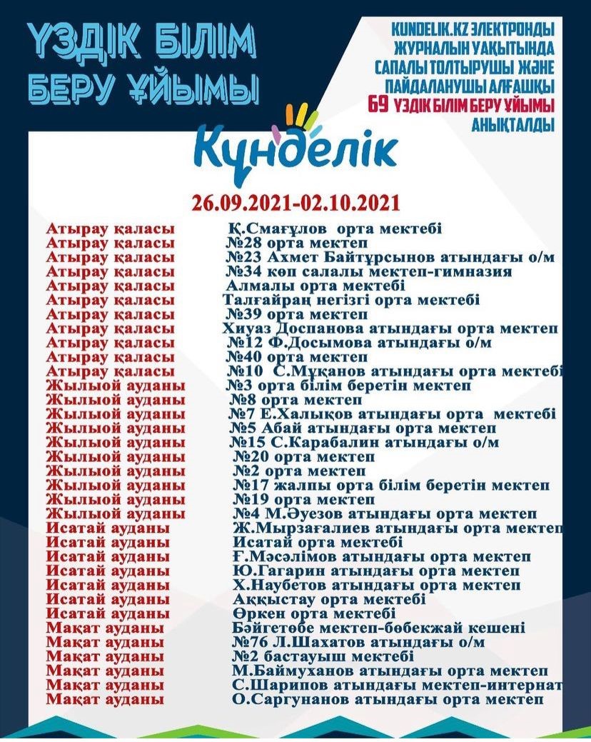 Kundelik.kz электронды журналын уақытылы толтырушы және белсенді қолданушы болып облыс бойынша алғашқы 69 үздік білім беру ұйымының қатарынан табылған болатын.