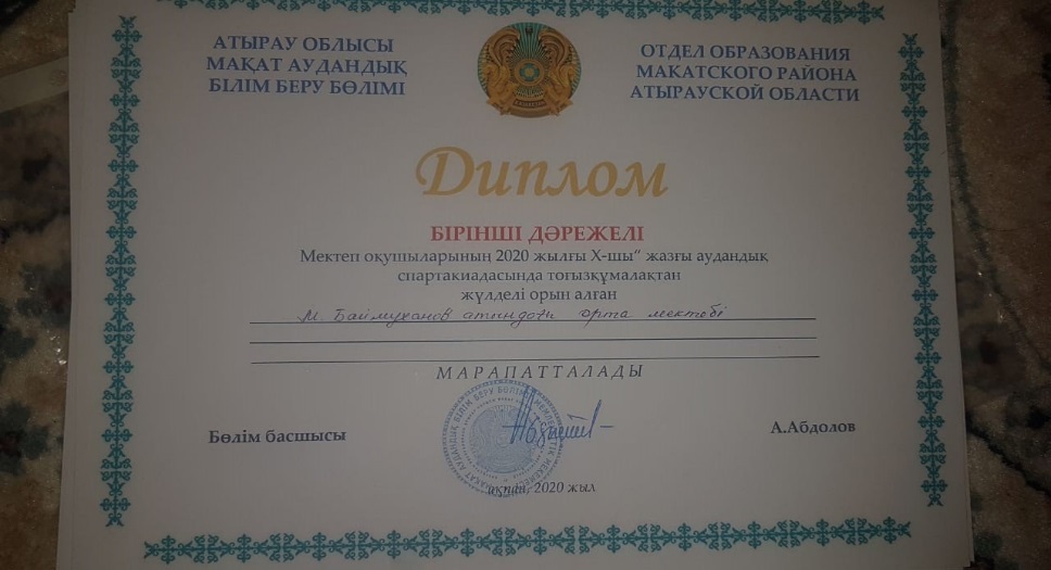 М.Баймұханов атындағы орта мектебінің қыздар командасы волейболдан І дәрежелі дипломмен марапатталды