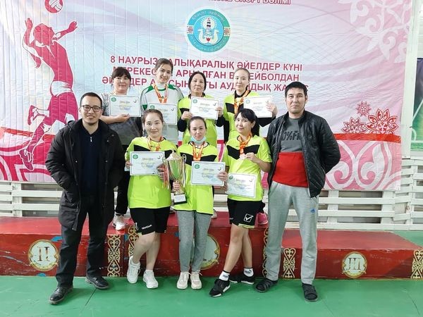 Мақат аудандық мәдениет, тілдерді дамыту, дене шынықтыру және спорт бөлімінің ұйымдастыруымен 8 наурыз - Халықаралық әйелдер күні мерекесіне арналған волейболдан өткізілген аудандық жарыста Муса Баймуханов атындағы орта мектебінің әйелдер командасы